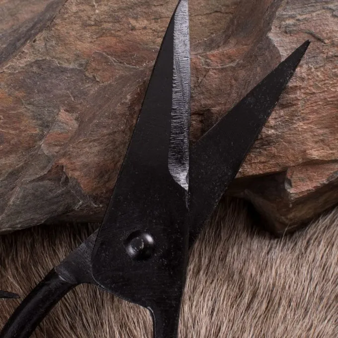 Eine praktische Schere, die leicht zu halten, für kleine und große Hände, ist ideal zum Schneiden von Gewebe, Faden und anderen Materialien. Diese Schere basieren auf mehreren Originalen. Schere sind seit dem fünfzehnten Jahrhundert vor Christus verwendet, und es ist eines der ältesten Utensilien der Menschheit. Auch Modelle ähnlich wie moderne Friseurscheren wurden bereits in Mesopotamien verwendet! Dieses Modell der Schere nahezu unverändert seit dem dreizehnten Jahrhundert blieb. Diese Scheren sind aus Stahl handgeschmiedet. Sie sind voll funktionsfähig und ein nettes Tool, wenn Sie in die historische Kunsthandwerk und Nähen sind, und für Reenactor ihr Handwerk in der Öffentlichkeit zeigt.