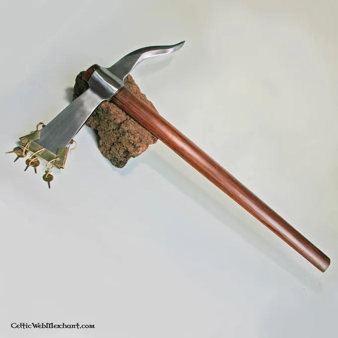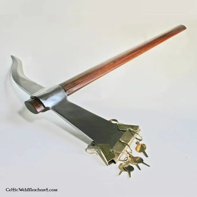 Dieses dolabra besteht aus einem hochwertigen Kohlenstoffstahl gefertigt und ist voll funktionsfähig. Es hat eine harte Holzschaft und seine Länge beträgt ca.. 77 cm. Es wiegt 2 kg.