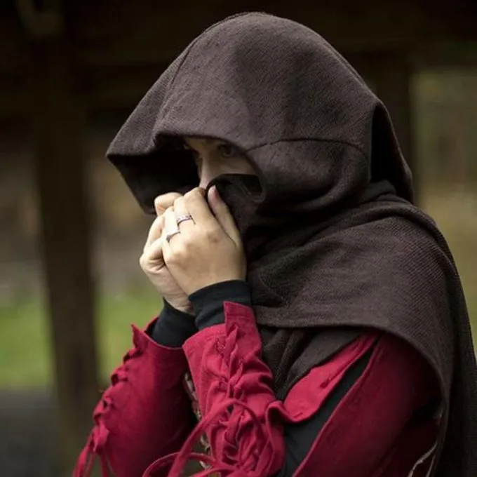 Diese Haube wird vom berühmten Videospiel Assassins Creed inspiriert und kann für alle Arten von LARP und Cosplay Zeichen getragen werden. Das Kleidungsstück besteht aus einer Haube mit langen Enden, die auf den Boden erreichen. Auf diese Weise können Sie es in vielerlei Hinsicht tragen. Sie können es wickeln alle um den Hals oder teilweise lassen es locker hängen.