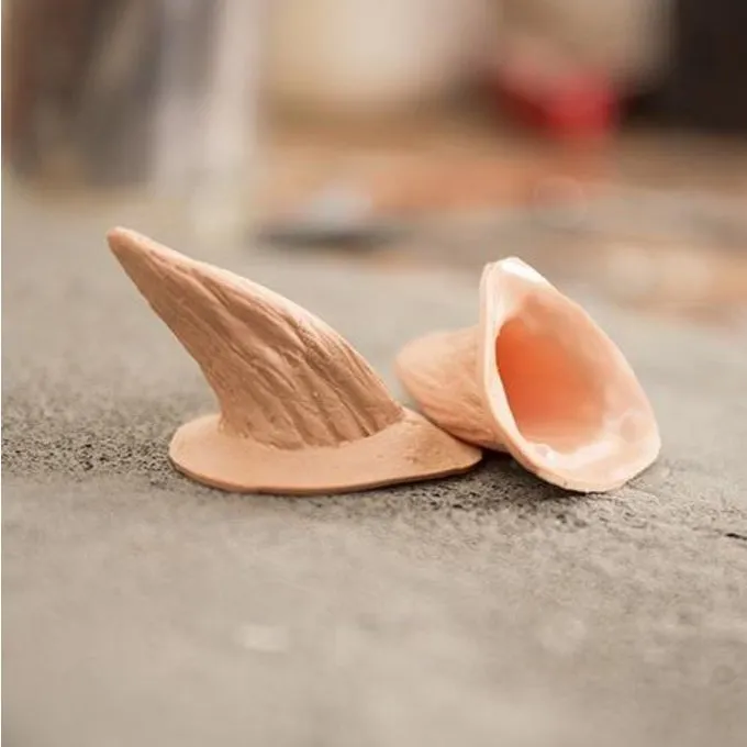 Hörner des Teufels, aus 100% Latex. Die Hörner können leicht mit Mastix Mastix und entfernt mit Mastix Mastix Entferner angewandt werden. Der Gummi und Entferner sind nicht enthalten. Die Länge jedes Horn beträgt ca. 2,5 cm, sie sind 2,5 cm breit und ragen ca.. 6 cm von der Stirn.