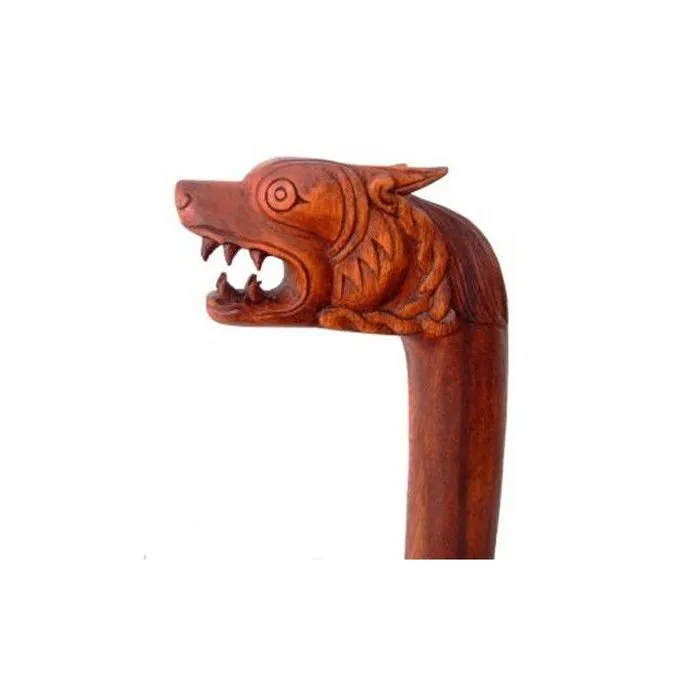 Handgemachter Holzstock mit einem Book of Kells Drachen. Dieser Stock ist leicht und voll funktionsfähig. Es besteht aus Segelholz, wiegt 1 kg und ist ca. 130 cm lang. Dieser Stock hat einen hölzernen Drachen, ein Motiv, das in der keltischen Kunst des frühmittelalterlichen Irlands häufig vorkommt. Dieser keltische Drache basiert auf den im Book of Kells abgebildeten Drachen.