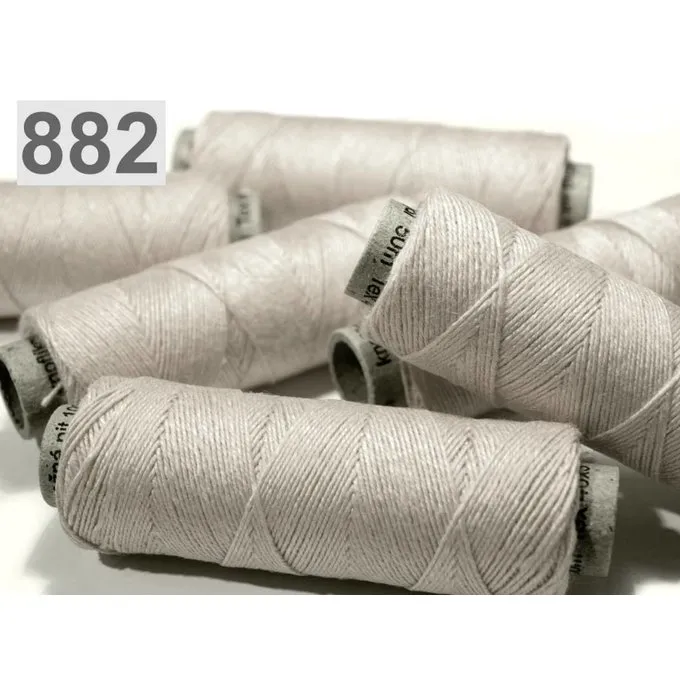Dieses Garn ist aus 100% Leinen und ist hellgrau grüne Farbe. Das Garn ist 3×40 tex dick und wird pro Spule von 50 Metern geliefert.