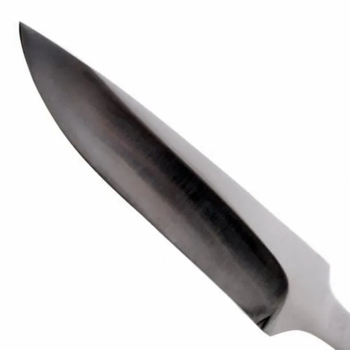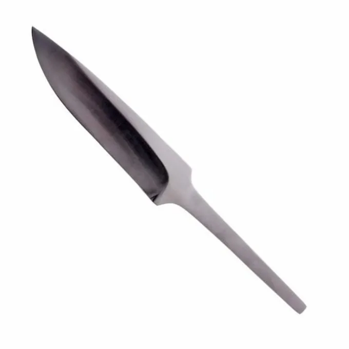 Diese handgeschmiedeten Messerklinge ist eine Nachbildung von mehreren frühen mittelalterlichen Originalen. Messerklingen wie diese wurden in ganz Europa zwischen dem 8. und 11. Jahrhundert verwendet. Es wird von 1085 Kohlenstoffstahl hergestellt und auf eine Härte von 54 temperiert – 56 HRC.