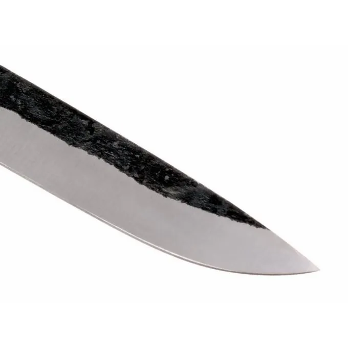 Messerklingen wie diese wurden in ganz Europa vom 5. bis zum 12. Jahrhundert verwendet. Es wird von 1085 Kohlenstoffstahl hergestellt und auf eine Härte von 54 bis 56 HRC.