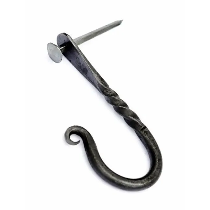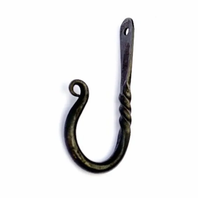 Dieser Wandhaken auf Beispiele aus dem Mittelalter basiert. Es ist ideal als Kleidung Haken oder für hängende Küchenutensilien oder Laternen. Die verdrehten Eisen gibt es einen eleganten Look.