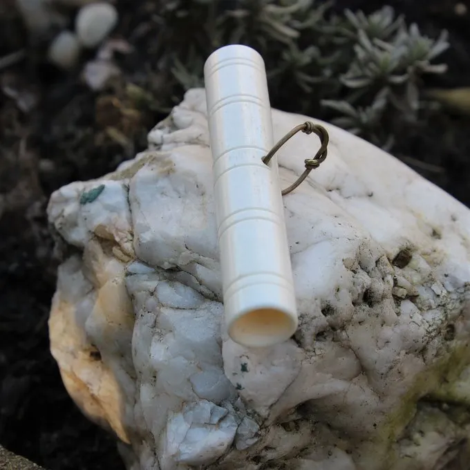 Material: Knochen / / Größe: 8 x 1,8 cm / / Durchmesser Öffnung: 1 cm / / Auf der Grundlage eines historischen Originals